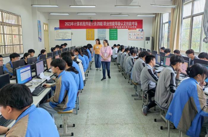为加快推进学校“1+X”证书制度,提高学生职业技能水平,日前,建湖中专开展了计算机程序设计员(四级)、广信和通信设备电子装接工(四级)两个工种共195人职业技能等级认定考试。