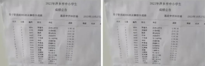 在本届运动会上,我校代表队的田径运动员们以不畏强手、齐心协力、奋力拼搏的精神,在各个项目中发挥出色,最终荣获了10金4银3铜的优异成绩,并以总分158分的成绩获得中职组团体总分第一名。我校于2017、2018、2019年连续三年斩获萍乡市中小学生田径运动会团体总分第一名,实现三连冠。三年疫情后,又再次获得市运动会团体总分第一名的好成绩,为学校体育教育事业再添硕果。