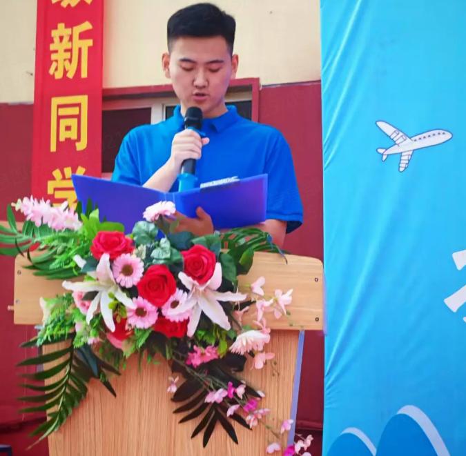 客运高技25-4班朴梓鑫同学作为新生代表上台发言。他眼神坚定:“我们将以饱满热情投入训练,服从命令、不怕苦累,在汗水中学会坚持,用行动诠释新时代青年的责任与担当!”真挚话语道出全体新生心声。