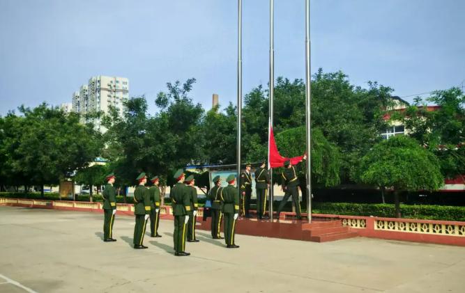 仪式进入庄严的迎国旗、升国旗环节。“请全体起立!”指令下达,全场人员身姿挺拔。《中华人民共和国国歌》奏响时,五星红旗冉冉升起,全体师生齐声高唱,嘹亮歌声回荡校园,爱国情怀在这一刻深深激荡。