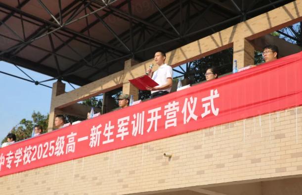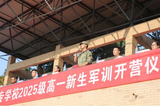 “我宣布,宁乡市职业中专学校2025级高一新生军训正式开营!”随着学校党委书记洪瑞强的郑重宣布,军训的号角正式吹响。