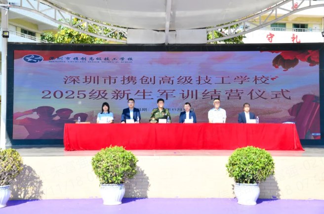 当深圳市携创高级技工学校党委书记、校长伊俊宏庄严宣布"2025级新生军训正式结营"的话音落下,学校北区运动场上空响起经久不息的掌声——这片见证着数千名学子七天淬炼的操场,此刻正沐浴在技能强国誓言与青春交相辉映的荣光中。秋风拂过多巴胺运动场,却拂不去一个个挺拔如松的身影留下的精神印记。