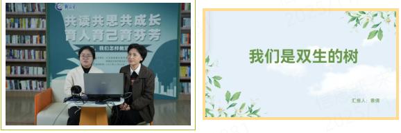 袁倩老师的《我们是双生的树》,介绍了书中“教育的过程是文化心理的过程、是师生精神交往的过程、是教师与学生互动的过程。”这句话让她这个新班主任从开始的忙乱,到与学生共同成长为双生树的蜕变过程。