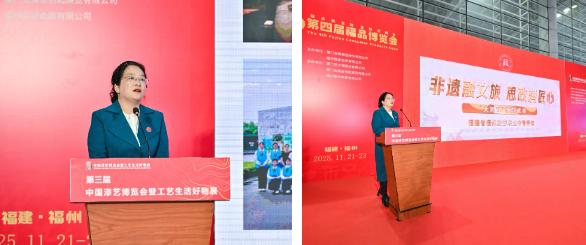 福建省工艺美术实验厂邱丹桦总经理的《构建面向未来的非遗教育:在守正与创新中创造现代艺术生活的价值》主题发言提出,非遗教育需以守正创新为核心,兼顾技能培养与创造力激发。他认为,“守正” 在于系统传承传统技艺精髓与深厚人文内涵,以精益求精的匠心精神滋养学习者的美学素养;“创新” 则要求将传统工艺与现代设计语言相融合,通过场景再造、语言转译,让非遗技艺融入日常生活与现代空间。他倡导构建开放的教育生态,整合传承人、设计师、院校、科技工作者等多方资源,借助AI等先进工具实现跨界创新,同时形成从小学体验、中学专业到大学综合实践的完整教育谱系,让每位学习者都能成为生活艺术家,让非遗文化在当代社会焕发新的价值与活力。