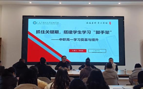 校长贾相成在会上作了题为《抓住关键期,搭建学生学习“脚手架”》的专题讲座。贾校长立足于职业教育“类型教育”高质量发展和“升学与就业并重”的政策背景,援引科学教育理论,对本次考试数据背后蕴含的学情“特殊性”与育人“机遇”进行了高屋建瓴的解读。他强调,高一是学生中职生涯的“黄金奠基期”,必须构建起以班主任为枢纽,教研组长统筹教学、任课教师精准施教、家校社协同保障的立体化“学习脚手架”体系。讲座从思想引领、班级管理、分层教学、精准辅导、路径规划等多个维度,系统阐述了搭建“脚手架”的实践路径与保障机制,为全体与会教师指明了工作方向,提供了方法指导。