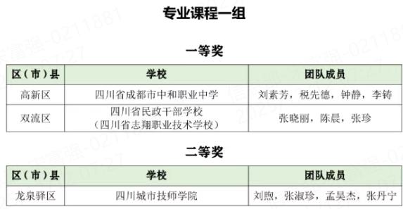 本次比赛设有公共基础课程组、专业课程一组、专业课程二组三个组别,全市共有34个参赛团队、137名教师同台竞技。四川省蒲江县职业中学的三个教学团队经过校级、县级层层选拔,成功入围成都市决赛。