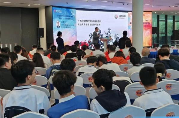 在随后的产业论坛环节,携创师生们认真聆听了众擎机器人联合创始人姚淇元先生的专题演讲。他从产业视角深入浅出地剖析了“具身智能”作为通用机器人的核心驱动力,强调其实现“感知—决策—执行”闭环的关键价值,并指出这一领域的发展需要全产业链的协同创新。讲座不仅拓宽了同学们的技术视野,更将专业学习与产业趋势紧密连接,增强了大家的职业认同感与发展信心。