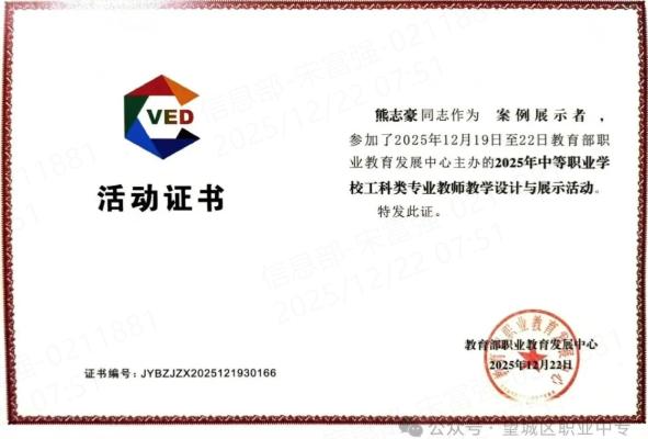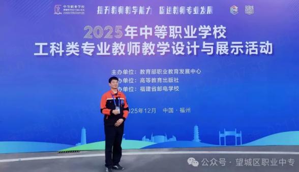 捷报刚传!刚刚在福州圆满落幕的2025年中等职业学校工科类专业教师教学设计与展示活动中,望城区职业中专计算机类孙雅川老师、机械类熊志豪老师凭借卓越实力惊艳全场,从全国近130支参赛队伍中脱颖而出,孙雅川老师的教学案例获评典型案例,熊志豪老师的教学案例获评展示案例奖,双双荣膺重要奖项,为学校赢得崇高荣誉!