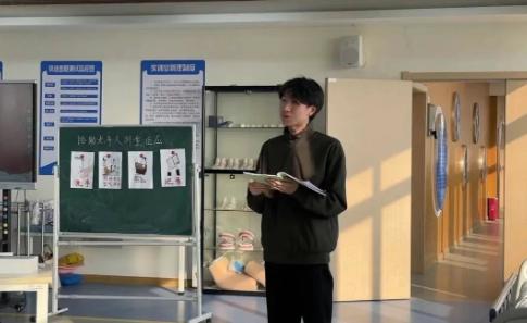 活动伊始,明伟佳老师面向特殊教育学校学生,带来《协助老年人测量血压》 主题实践课程。结合特殊学生学情特点与未来职业发展需求,明老师耐心拆解操作步骤、细致讲解注意事项,运用可视化教具、分层指导等多元教学手段,为学生提供个性化辅导,确保每位学生都能参与实操、掌握基础技能。课堂上,特殊教育学校学生现场参与模拟实操,在互动中巩固技能,充分体现了“教适其需、学尽其能”的特职融合理念。