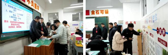 随后,考察团分组深入我校课堂,沉浸式感受我校课堂教学氛围,并与授课教师及相关学科教师围绕课堂设计、教学方法、学情把握等核心议题展开深度交流,对我校务实高效的课堂教学模式给予充分认可。与此同时,在行政楼三楼会议室,双方围绕教学管理工作展开专题座谈。市派党建指导员甘晓波详细介绍了我校在课程设置、教学常规管理、教研活动开展、质量评价体系等方面的经验做法,双方就教学管理中的重点难点问题进行深入探讨,分享各自思路与举措。