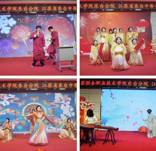 会演在舞蹈《恭喜发财》的喜庆旋律中启幕,薛铭悦、王素雅等同学以灵动舞姿传递新年祝福,瞬间点燃全场氛围。紧接着,相声《又是一年冬》凭借幽默台词与默契配合,复刻职校冬日奋斗日常,引发师生共鸣;古筝伴舞《烟雨行舟》以悠扬乐声与轻盈舞步勾勒江南雅韵,舞蹈《盛世敦煌》则用恢弘意境再现千年文化瑰宝,尽显学子对传统文化的传承与创新。