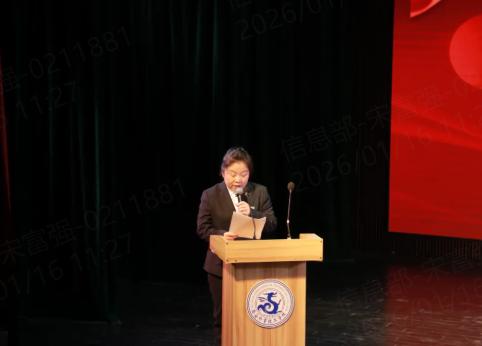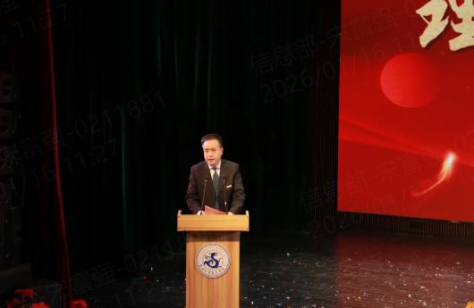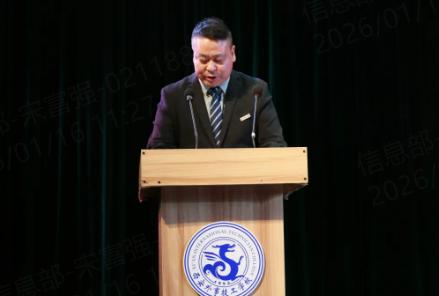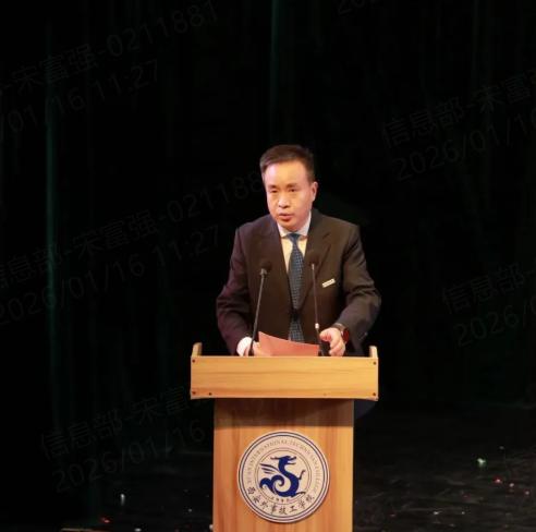 学校理事长房长宏为本次晚会致辞。他深刻总结了全体师生一年来在各级各类技能竞赛、教学科研等工作中取得的优异成果,并指出2025年是砥砺奋进、实现跨越的一年。值此岁序交替之际,理事长强调,2026年,作为“十五五”规划的开局之年,需“要锚定目标任务,坚定信心、乘势而上,扎实推动高质量发展”。随后,房理事长对全体师生提出殷切期望:“山海寻梦,不觉其远;前路迢迢,阔步而行。”他希望全体外事人以跃马扬鞭的勇气,激发万马奔腾的活力,在新的一年里同心同德,共同为梦想奋斗、为幸福打拼!最后,房理事长表达了对全校师生、校友和所有关心、支持学校发展的各界有识之士在新年里的美好祝愿。