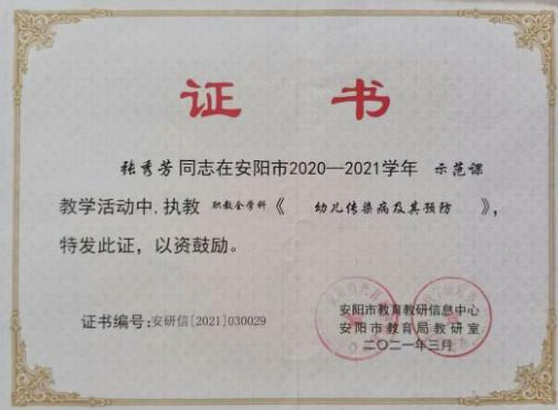 张秀芳,大学本科学历,深耕职业教育一线教学多年。她兼具思政德育课程与学前教育专业课程的授课经验,曾执教《幼儿卫生学》等核心课程,凭借扎实的教学功底,在2018年安阳县中等职业学校优质课评选中,以《气道异物的紧急处理》一课荣获一等奖,2020-2021学年还曾在安阳市教育局教研室组织的活动中执教《幼儿传染病及其预防》示范课。