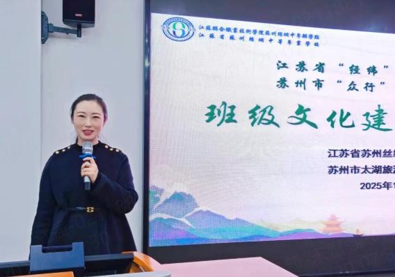 专题经验分享环节结束后,太湖旅游中专副校长徐丽萍作总结发言。她首先对本次德育研学交流活动的圆满开展表示肯定,对我方毫无保留的经验分享、细致周到的活动安排再次表达了诚挚谢意。徐校长表示,此次研学交流干货满满、收获颇丰,丝绸中专展示的特色德育模式、务实有效的育人举措,为太湖旅游中专优化德育工作提供了宝贵借鉴,尤其在特色德育载体打造、班主任队伍建设等方面,拓宽了学校的育人思路。