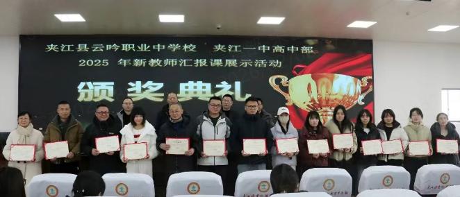 会议举行了简朴而庄重的颁奖仪式,校领导们对新教师汇报课及“普职融通、多元发展、人人成才”主题演讲比赛活动中获奖的教师颁发证书,勉励大家珍惜荣誉、再创佳绩。