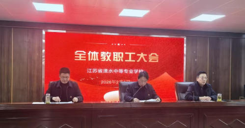 2026年2月6日,江苏省溧水中等专业学校召开学期末全体教职工大会,回顾总结本学期工作,部署假期及新学期重点任务。会议由党总支书记魏贤平主持,全体教职员工参加。