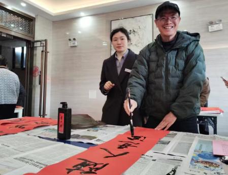 翰墨飘香迎新春,春联送福暖人心。恰逢新春佳节来临之际,龙岩华侨职业中专学校黄水庆老师、曾帆老师和丘马武老师带领书法社同学,走进云墅小区开展写春联送祝福活动。此次活动既是学校今年与北关社区开启党建共建后的首场文化互动,也是传承中华优秀传统文化、践行志愿服务精神的具体实践。