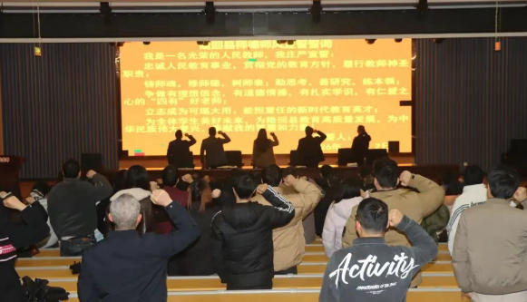 师德师风是立身之本。会议专题开展师德师风教育,纪检室主任段卫辉组织学习师德规范,强调廉洁从教。全体教职工郑重签订师德承诺书、庄严宣誓,进一步坚守育人底线、涵养高尚师德。
