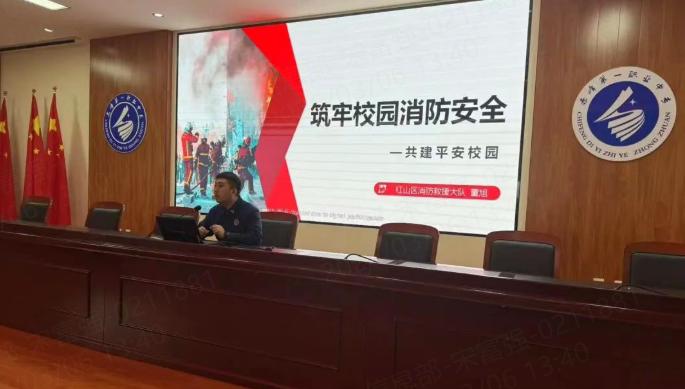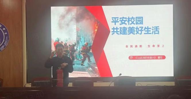 讲座特邀红山区消防专业教官主讲,围绕校园火灾隐患排查、初期火灾扑救、火场逃生自救、消防器材使用四大核心内容展开。教官结合近年校园、宿舍、实训场所典型火灾案例,用真实事故视频与图文数据,深刻剖析电器违规使用、私拉乱接电线、消防通道堵塞、易燃物品违规存放等常见隐患的严重危害,以案为鉴、警钟长鸣,让师生直观感受火灾无情,强化“安全第一、预防为主”的责任意识。