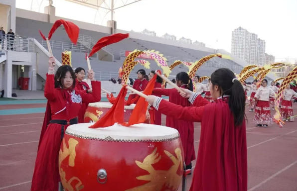 随后,激动人心的龙狮鼓民俗展演随即登场。金鼓齐鸣,龙腾狮跃,海专学子以铿锵有力的鼓点、灵动矫健的身姿,重现了正月初一、初五亮相海安、南通街头时的精彩瞬间。巨龙盘旋腾跃、雄狮昂首摆尾,每一个动作都尽显青春风采,每一阵鼓点都擂响奋进号角,不仅赢得现场师生阵阵喝彩,更充分展现了海安中专学子昂扬向上的精神风貌,彰显了学校深耕传统文化育人的办学特色。