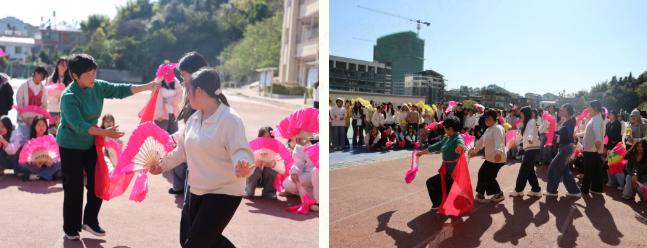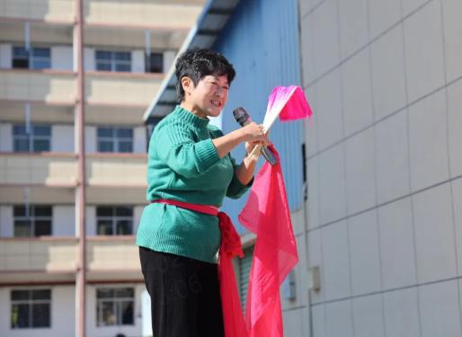吴细凤:赣州市非物质文化遗产安远县九龙山采茶戏传承人,现场示范了赣南采茶戏单扇组合、绕花、《对花》组合等表演,让学子们直观感受赣南采茶戏的独特韵味。