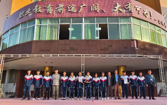 学校党委委员、副校长张振兴为荣获舞狮赛中职男子组第二的醒狮队颁奖