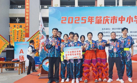 2025年肇庆市中小学生舞龙舞狮锦标赛中,广东省肇庆市四会中等专业学校醒狮协会参赛队伍奋勇拼搏、表现亮眼,斩获中职组女子第一名、男子第二名,中职组团体总分第二名的优异成绩。