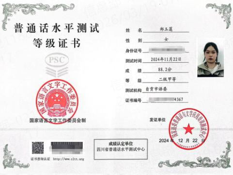 在校期间,郑玉莲同学凭借扎实的专业素养与不懈努力,取得了普通话二甲证书,并在各级各类比赛中屡获殊荣: