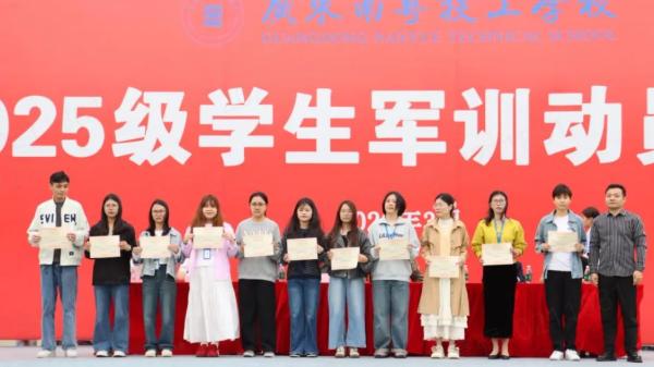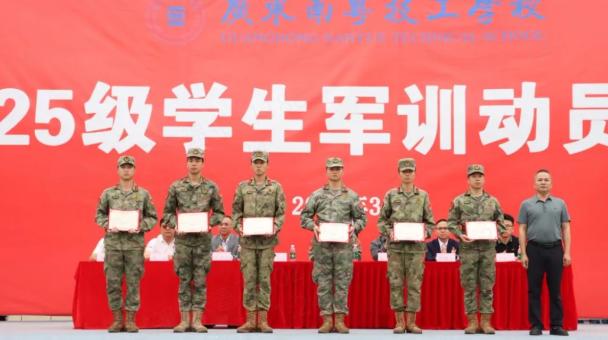 出席本次结营仪式的领导有:军训团团长陈俊国、执行校长黄荣生、副校长朱青勇、校长助理黄思泰、学校各部门负责人、全体教官、班主任与2025级新生共同参加本次大会。