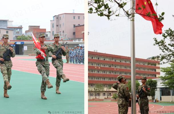 仪式伊始,全体起立,国旗护卫队身姿挺拔、眼神坚定,迈着整齐的步伐,在铿锵有力的脚步声中护送鲜艳的五星红旗走向升旗台。军训汇演在庄严的国歌声中拉开帷幕,全体师生面向国旗肃立,行注目礼,奏唱国歌。嘹亮国歌响彻校园,点燃全场爱国情怀。