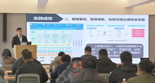为深化中职课堂教学改革,提升教研组长专业素养与教学引领能力,近日,2026上半年温州市中职装备制造大类、电子信息类专业教研组长和中职历史教研组长工作研讨活动在温州市瓯海职业中专集团学校(以下简称“瓯海职专”)郭溪校区顺利举行。来自全市各县(市、区)的教研员、教研组长及骨干教师齐聚一堂,围绕课堂教学改革、教研团队建设、AI赋能教学等议题展开深入交流。
