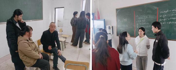 集中大会后,各班有序开展分班交流。班主任详细分析班级学情、考情,给出针对性备考建议;各任课老师结合学科特点,讲解复习重点、分享提分技巧,并与家长一对一沟通,细致解答疑问,精准对接学生在家与在校学习状态,共同制定助力提升方案。