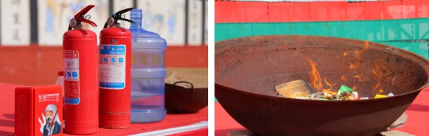 疏散演练结束后,演练进入核心实操环节。现场工作人员点燃模拟火盆,直观展示火情。