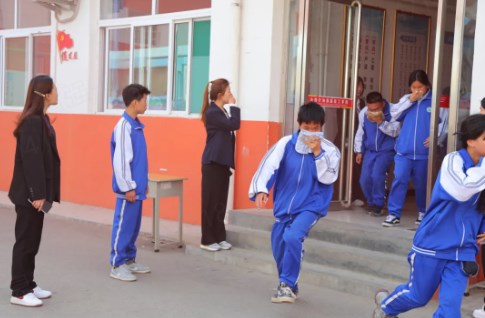 在任课老师的有序指挥下,各班学生反应迅速、行动规范,纷纷用湿毛巾捂住口鼻,弯腰低姿沿墙壁快速行进,严格按照预设疏散路线,有序向操场安全区域撤离。