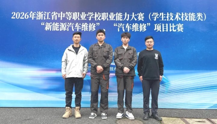 4月11日— 4月13日,2026年浙江省中等职业院校技能大赛新能源汽车维修项目在浙江交通职业技术学院落幕,我校选手23智能班郑佑平(班主任 许强)、23新能源1班陈朝鑫(班主任 许约翰)凭借扎实专业功底和良好职业素养,荣获省级二等奖。