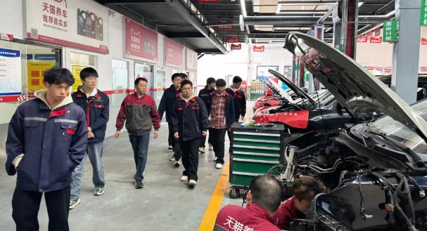 常州市工贸高级技工学校学子打卡“天猫养车”,解锁汽修新视界。