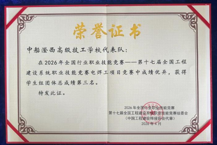 近期,2026年全国行业职业技能竞赛—第十七届全国工程建设系统职业技能大赛电焊工项目在杭州圆满落幕,中船集团旗下中船澄西高级技工学校参赛师生奋勇拼搏,在全国顶尖选手的激烈角逐中斩获多项荣誉,彰显了学校技能人才培养的扎实成效。