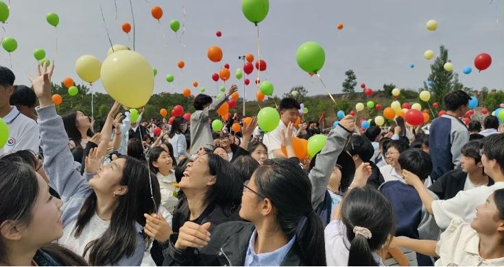 仪式尾声,同学们放飞承载着美好憧憬与青春梦想的气球,让希望随风飞向广阔蓝天!