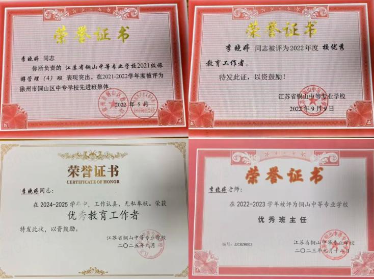 此外,李晓婷老师还多次担任技能大赛教练,指导学生斩获省级奖项;先后获评2022年江苏省文明风采活动优秀指导教师、2023年江苏省校园心理剧一等奖指导教师,2025年江苏省技能大赛优秀指导教师,2026年江苏省技能大赛优秀指导教师,用专业力量,为学生的专业成长搭建桥梁。