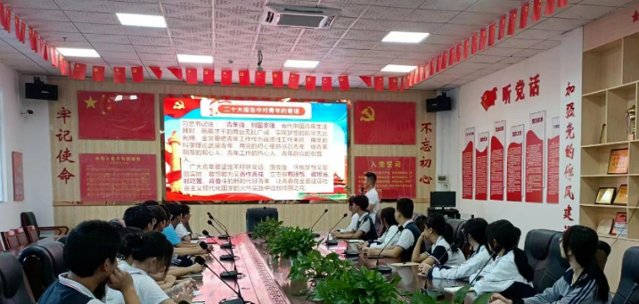 团委书记林嘉庆首先向刚刚加入团组织的新团员表示热烈祝贺,他以“砥砺奋进守初心,青春献礼二十大”为主题带领全体团员重温党的二十大报告对青年的寄语,他号召全体同学要肩负起历史使命,抱有远大理想、努力提高自身素养、调整好自己的心态、摆正好自己的位置、要有能吃苦耐劳的精神、有责任感。要做到爱国、爱家、爱校、爱己、感恩一切,要不断增强报效祖国的意识,为祖国的繁荣昌盛贡献自己的力量。