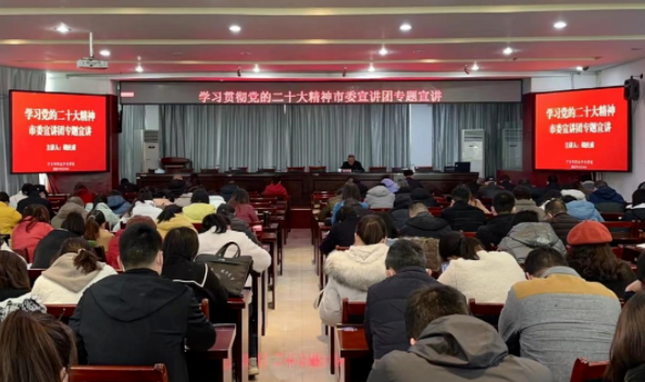12月14日,学习贯彻党的二十大精神宁乡市委宣讲团专题宣讲在宁乡市职业中专学校举行。