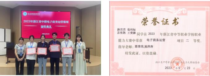 2023年5月18日,5月23日,苍南县职业中等专业学校学生参赛团队在2023年浙江省中等职业学校职业能力大赛“艺术设计”和“电子商务运营”赛项中成绩突出,分别荣获三等奖、二等奖,创历年成绩新高。