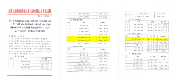 2023年山东省“技能兴鲁”职业技能大赛--第二届全国工业和信息化技术技能大赛山东省选拔赛半导体分立器件和集成电路装调工(汽车芯片开发应用)赛项成绩公布,电气工程教学中心教师隋雨君、孔德龙、唐杰、张光光获得职工组二等奖,2021级电气1班(陈嘉庚班)鲁俊亮、姚合键获得学生组二等奖。