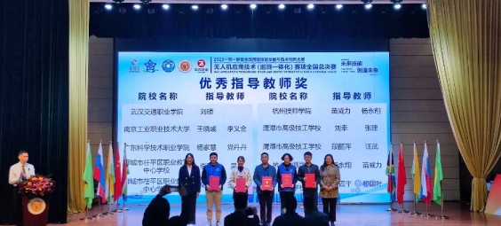 春华秋实,硕果芬芳。近日,鹰潭市高级技工学校教师刘幸、张建;段丽萍、汪武分别指导的学生汪财宏、陈紫怡;苏承志、魏楚阳在一带一路暨金砖国家技能发展与技术创新大赛之无人机巡测一体赛项全国总决赛中斩获两个团体二等奖,四位老师荣获“优秀指导老师”荣誉称号,我校被授予“优秀组织奖”荣誉称号。