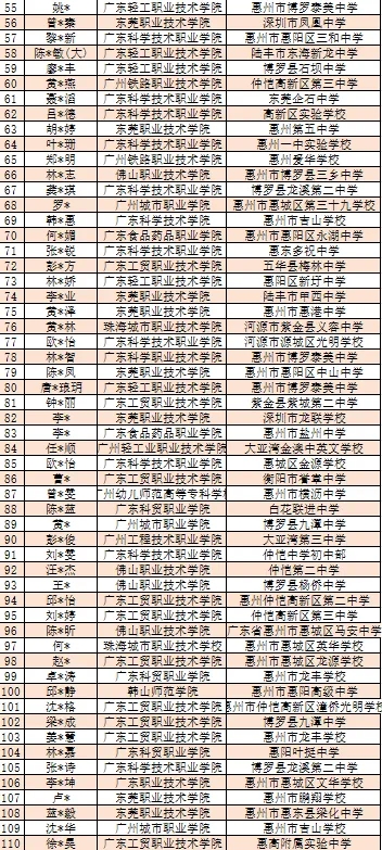我校2024届考生被广东省双高计划一流高职院校(均为公办)录取人数增加,15名同学被深圳职业技术大学录取,9名同学被深圳信息职业技术学院录取,20名同学被广东轻工职业技术学院录取,39名同学被广东交通职业技术学院录取,25名同学广东水利电力职业技术学院录取,13名同学被广东食品药品职业学院录取,15名同学被广东科学技术职业学院录取,10名同学被东莞职业技术学院录取。今年我校214人被广东省双高计划一流高职院校录取,可喜可贺。