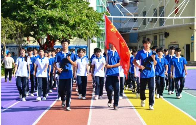 当深圳市携创高级技工学校党委书记、校长伊俊宏庄严宣布"2025级新生军训正式结营"的话音落下,学校北区运动场上空响起经久不息的掌声——这片见证着数千名学子七天淬炼的操场,此刻正沐浴在技能强国誓言与青春交相辉映的荣光中。秋风拂过多巴胺运动场,却拂不去一个个挺拔如松的身影留下的精神印记。