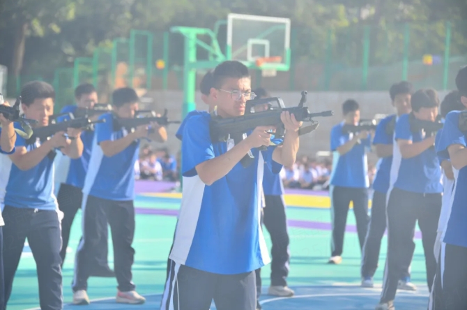 首先登场的分列式表演中,各学院代表方阵以排山倒海之势通过主席台。受训学子们踏着《分列式进行曲》的节拍,步伐铿锵有力,每一个正步都砸出沉稳的回响,每一次摆臂都划出整齐的弧线。他们目光如炬,口号震天,将军人特有的精气神展现得淋漓尽致。