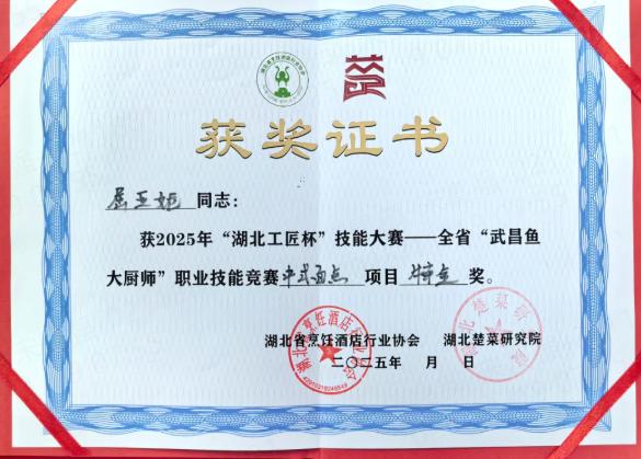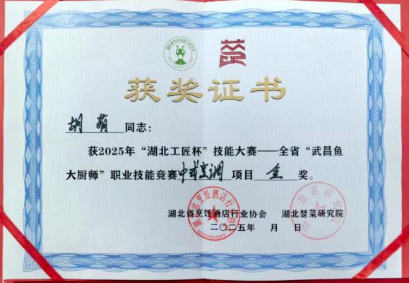 武昌鱼作为“楚天第一菜”,其烹饪技艺讲究选料严格、刀工高超、火工神妙,从传统清蒸的原汁原味到中西融合的创新演绎,承载着荆楚饮食文化的传承与发展。我校教师在赛事中的亮眼表现,既是个人技艺的极致展现,更是学校深耕职业技能人才培养、践行“以赛促学、以赛促训”理念的生动写照。未来,学校将继续聚焦技能传承与创新,以更多优秀师资为引领,培育更多高素质烹饪技能人才,为楚菜文化繁荣与地方产业发展注入不竭动力!