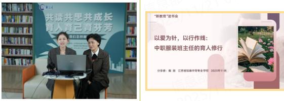 初冬墨香织育思,共读时光落芬芳。日前,如皋中专承办的新教育读书会新职业教育社群共读活动圆满落幕。全校班主任与专家和书友们齐聚云端,在徐芹霞老师的主持下,共赴《今天,我们怎样做班主任》的书海之约。