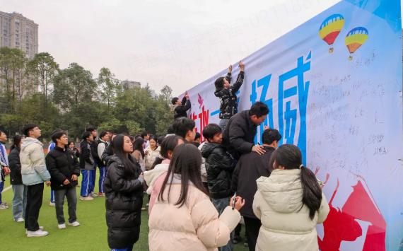 为凝聚全校师生力量,激发学子冲刺热情,12月8日,隆化职中举行以“师伴生行齐鏖战,家校同心闯雄关”为主题的百日誓师大会。党委副书记、校长王贵红,党委委员、副校长艾龙,各系部负责人及高三全体师生齐聚操场,共同见证这一庄重而激昂的时刻。高三全体师生携手擂响冲刺战鼓,为青春梦想庄严誓师。